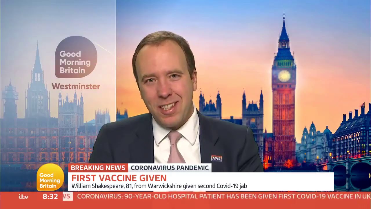 Matt Hancock appeared on GMB this morning as the first miraculous vaccine was administered. Watch below to see him pretend to cry whilst trying to stifle a giggle.