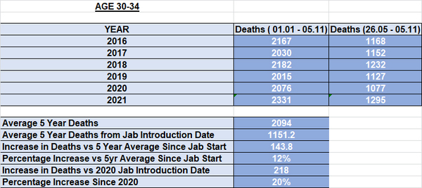 These figures do not paint a picture of young Adults in this age group doing well. Since the jab start, more are dying than last year.
