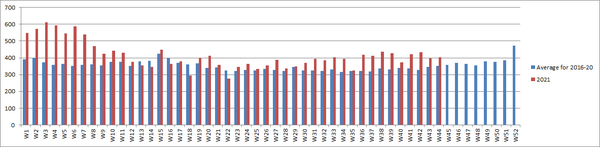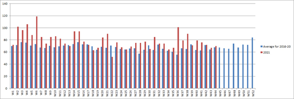 After the jab start date deaths are now 27% above 2020 & worryingly 10% above the 5 year average.