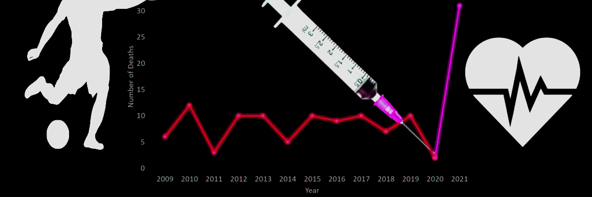 Please share our story! Print đš PDF đExtensive research has revealed that deaths of professional football/soccer players due to cardiovascular issues are doubling every three months, with the number of deaths occurring … Continue reading FIFA Football Deaths in December 2021 alone matched the annual average for the last 12 years