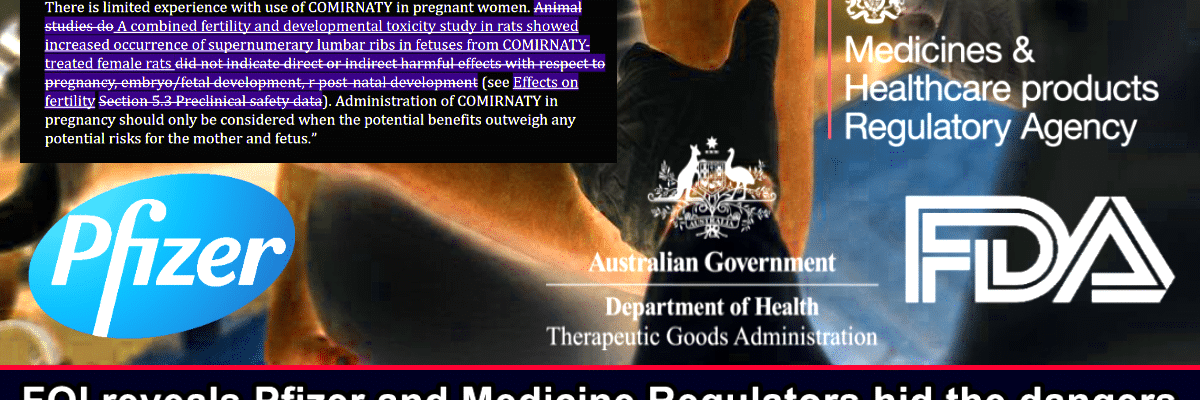 Please share our story! Print 🖨 PDF 📄A ‘Freedom of Information’ request alongside an in-depth dive into the only pregnancy/fertility study performed on the Pfizer Covid-19 injection has revealed that Medicine Regulators … Continue reading FOI reveals Pfizer and Medicine Regulators hid the dangers of Covid-19 Vaccination during Pregnancy because Study found it increases risk of Birth Defects & Infertility