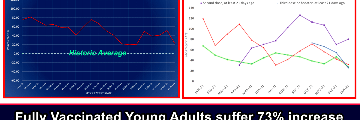 Please share our story! Print 🖨 PDF 📄Official figures show there has been a 67% increase compared to the historical average in the number of people aged 15 to 44 suffering heart … Continue reading Fully Vaccinated Young Adults suffer 73% increase in Heart Attacks & Strokes and 92% higher Mortality Rate compared to Unvaccinated