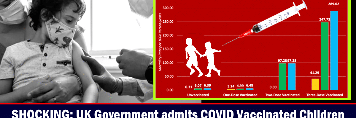 Please share our story! Print 🖨 PDF 📄The UK Government has quietly confirmed that the Covid-19 vaccines are killing children at an unprecedented rate. Shocking figures contained in an official report, published … Continue reading SHOCKING: UK Government admits COVID Vaccinated Children are 4423% more likely to die of any cause & 13,633% more likely to die of COVID-19 than Unvaccinated Children