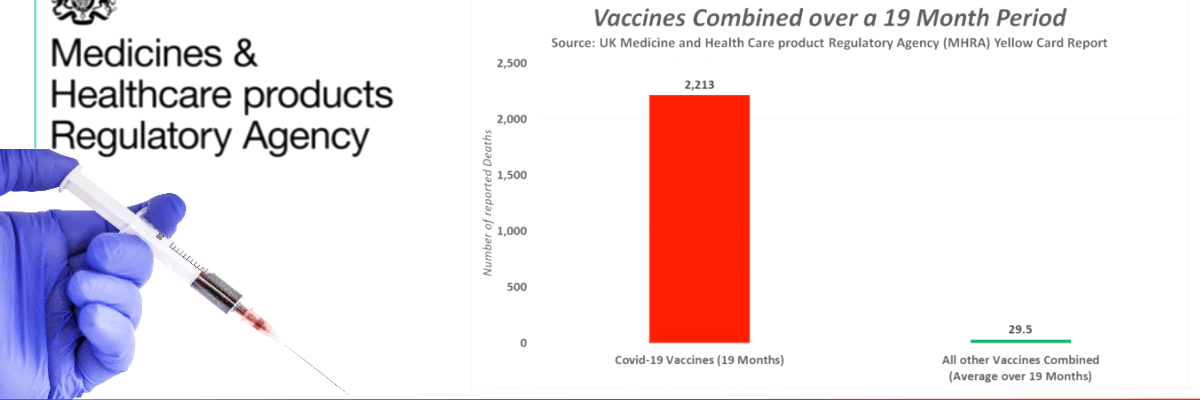Please share our story! Print đź–¨ PDF đź“„The UK Medicine Regulator has confirmed that over a period of nineteen months the Covid-19 Vaccines have caused at least 5.5x as many deaths as … Continue reading UK Medicine Regulator confirms COVID-19 Vaccines are at least a shocking 7,402% deadlier than all other Vaccines combined