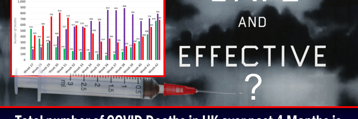 Please share our story! Print 🖨 PDF 📄Official figures published by the UK Government confirm the total number of Covid-19 deaths in England and Wales over the past four months is 96% … Continue reading Total number of COVID Deaths in UK over past 4 Months is 96% higher than total in 2020 despite roll-out of Fifth Dose