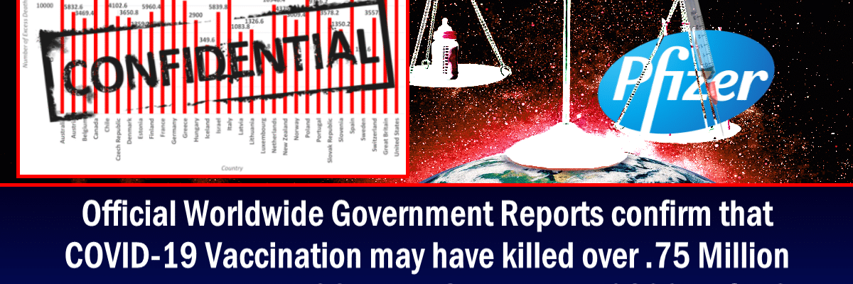 Please share our story! Print đ¨ PDF đOfficial Government figures prove that every single country that coerced millions of its citizens into getting the Covid-19 injection has suffered tens to hundreds of … Continue reading Worldwide Government Reports confirm COVID Vaccination may have killed .75 Million People across 38 major Countries in 2022 so far & Pfizer Documents prove this may lead to mass Depopulation