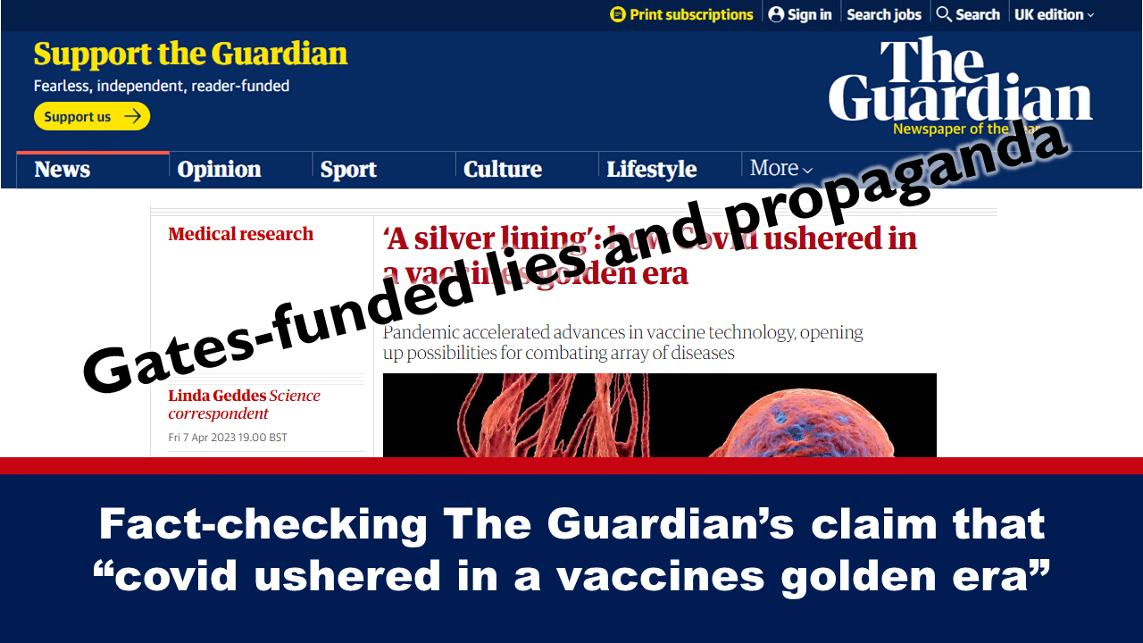 Both articles were written by Linda Geddes, science correspondent of the Guardian. Dig a little and you discover that Geddes is also a consultant to GAVI, the Global Vaccine Alliance whose largest donor is the Gates Foundation. Two lead articles on the same day in a supposedly independent newspaper says a lot about the enormous reach of GAVI, Gates, and Big Pharma.