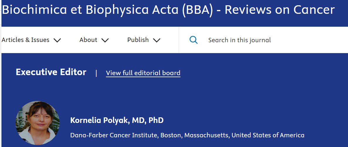 Executive Editor: Kornelia Polyak, Harvard MD PhD (Dana Farber Cancer Institute, Boston)